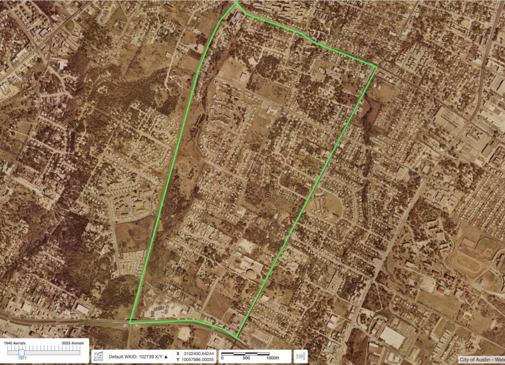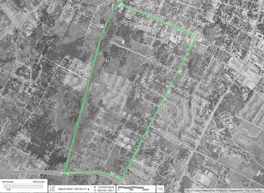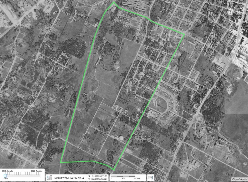 Aerial photographs came from Google Earth Pro (free download at https://www.google.com/earth/about/versions/), the City of Austin Property Profile Explorer (https://maps.austintexas.gov/GIS/PropertyProfile/), and from an Aerotech photograph book purchased by Lori Perry.
